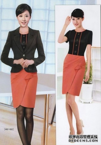 这套职业装更突显成熟的没来,橘色的裙子非常有个性,加上一件小职业装显示了完美的身材。